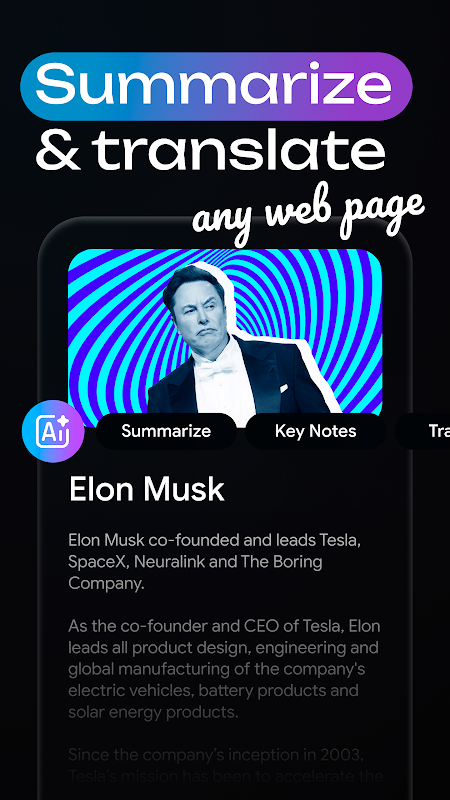 تحسين تجربة البحث عن المعلومات. الآن ليس عليك التدقيق في المقالات الطويلة أو المحتوى الهائل. ما عليك سوى أن تطلب من مساعدة الذكاء الاصطناعي تكثيف صفحات الويب في مقتطفات والاستمتاع بقراءة ملخصات موجزة وسهلة الفهم. باستخدام مساعد التلخيص الشخصي الخاص بك والمدعوم من ChatGPT، يمكنك فهم المعلومات الأساسية في لمحة.