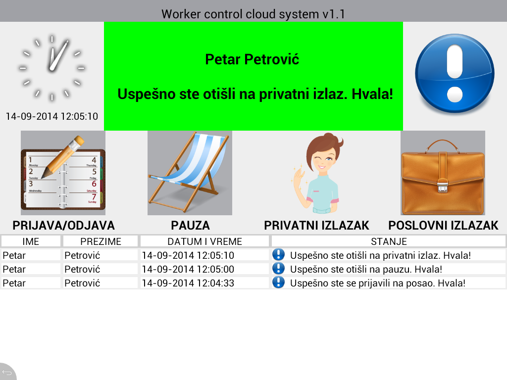 Aplikacija za evidenciju zaposlenih. Kako bi aplikacija radila potrebno je kontaktirati tehničku podršku. Kontakt telefone možete pronaći na www.kontrolaradnika.com
