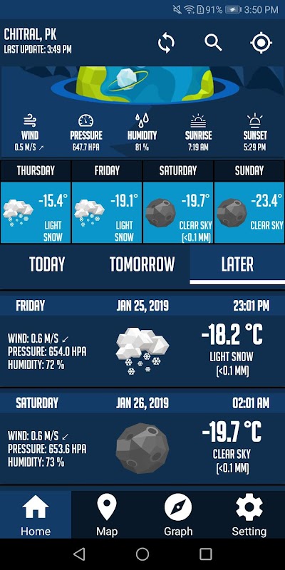 - التطبيق الطقس اليوم مع الطقس المحلي غدا