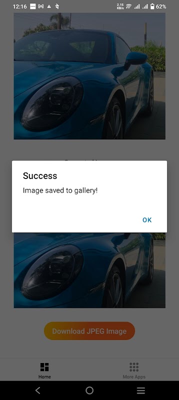 2. الخطوة 2: يقوم التطبيق تلقائيًا بتحويلها إلى صورة JPEG عالية الجودة.
