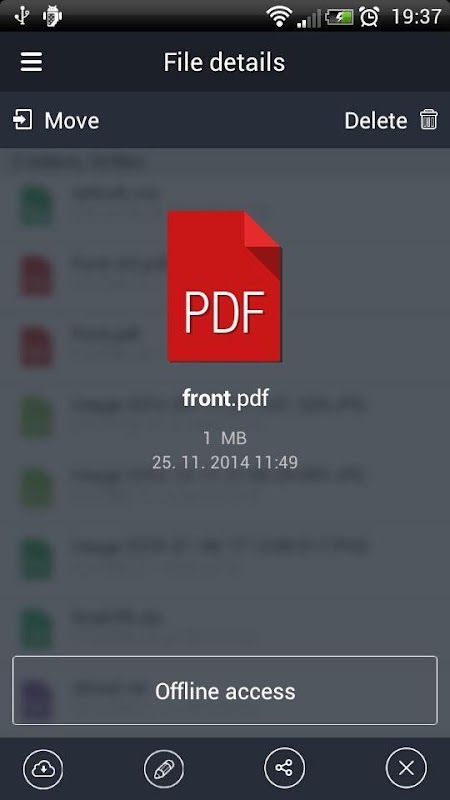 مع التطبيق المحمول، يمكنك تصفح إلى الملفات الخاصة بك، وكذلك ملفات العامة من المستخدمين الآخرين، ومراجعة هذه الملفات، ومشاركتها مع الأصدقاء، وبالطبع يتم تحميلها إلى الهاتف الخاص بك. الصور ومقاطع الفيديو، التي تتوفر أيضا معاينات.