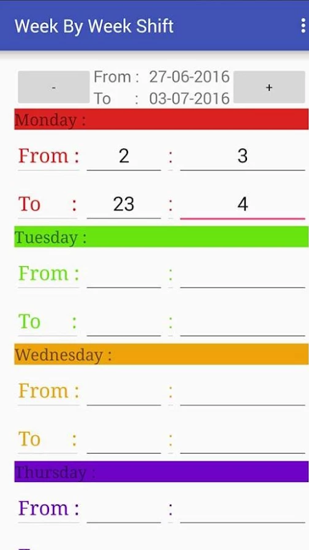 Week By Week Shift is an Android Application that organizes your working hours in every week. It is directed to people who have a non-fixed shift.