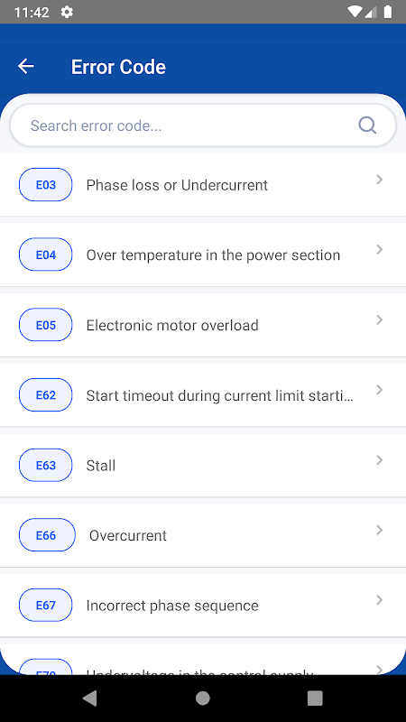 وقد أنتجت WEG هذا التطبيق لمساعدة العملاء على تحديد الخطأ ورموز التنبيه.