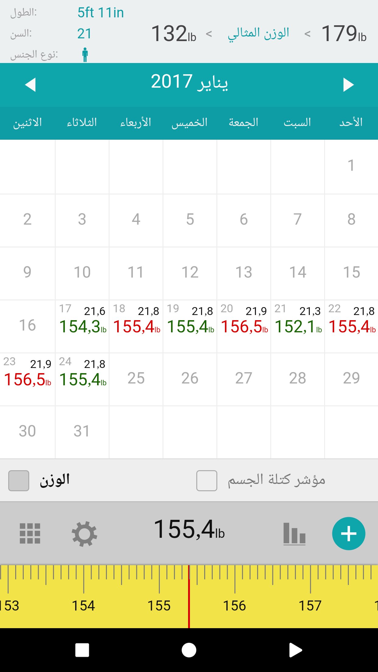 هذه الوزن التقويم هو تطبيق مجاني وسهل الاستخدام