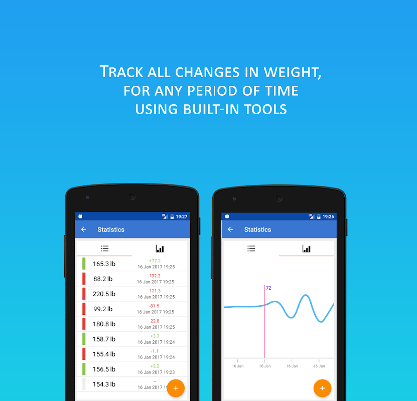 All kinds of graphics and statistics will allow you to monitor improvement of weight index. You also have an ability to set the weight you want, what can motivate you to reach your aim. The application fits both sportsmen and people, who want to improve their health.