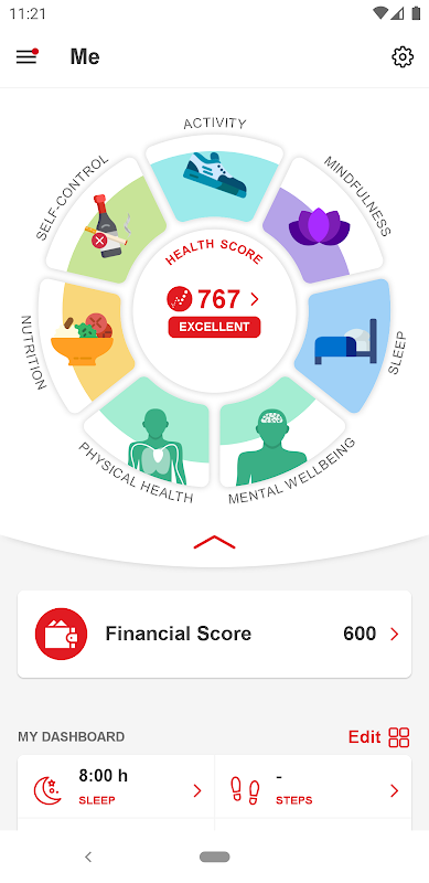 تقيس النتيجة الصحية Well One سبعة جوانب مختلفة من صحة المستخدم لحساب النتيجة العلمية التي تحدد صحتهم الشاملة. يمكن أن تتراوح النتيجة الصحية من 0 إلى 1000، وعند تتبعها بمرور الوقت تقدم مؤشرًا جيدًا لكيفية تطور صحة المستخدم. تعطي درجة الرفاهية المالية إشارة إلى مستويات الضغط المالي أو النجاح.