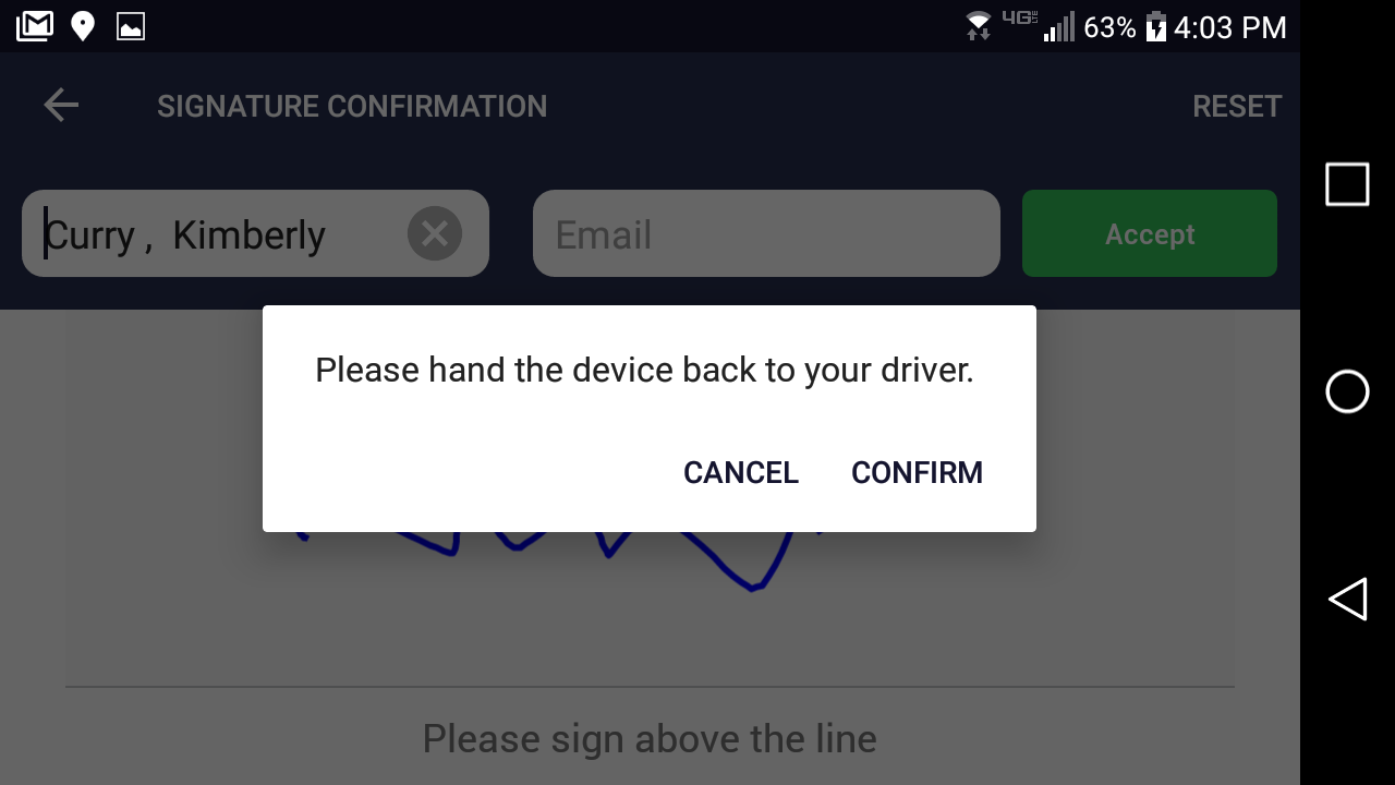 دليل على الاستلام والتوصيل مع توقيع الراكب