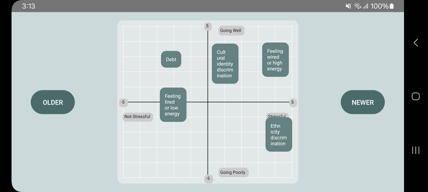 – حدد ما يهم: اختر من قائمة مخصصة من العلامات التي تعكس جوانب الحياة التي تؤثر عليك الآن.