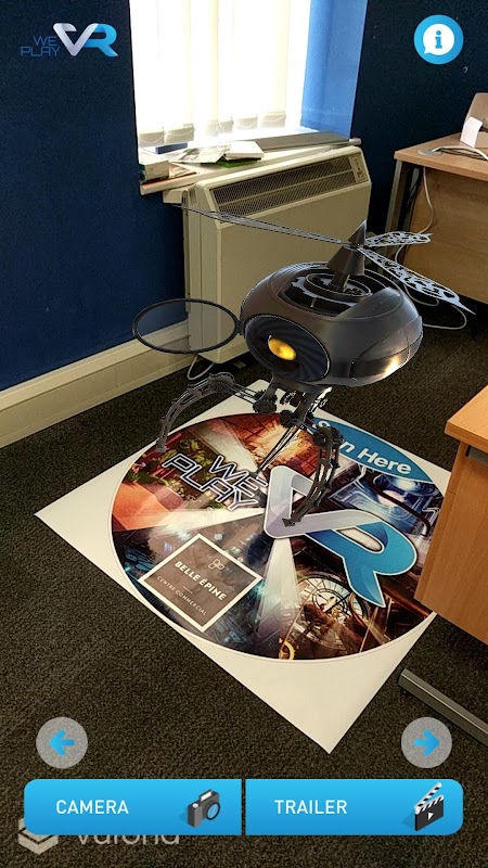 The WePlayVR App displays video content and has the ability to display AR images if the appropriate marker is scanned. There are 2 markers available; 1 sticker and 1 floor marker. It uses the phone camera to scan either marker and reveal an AR experience/ 3d model of your favourite characters. You can take photos and videos of them which you can share with your friends.
