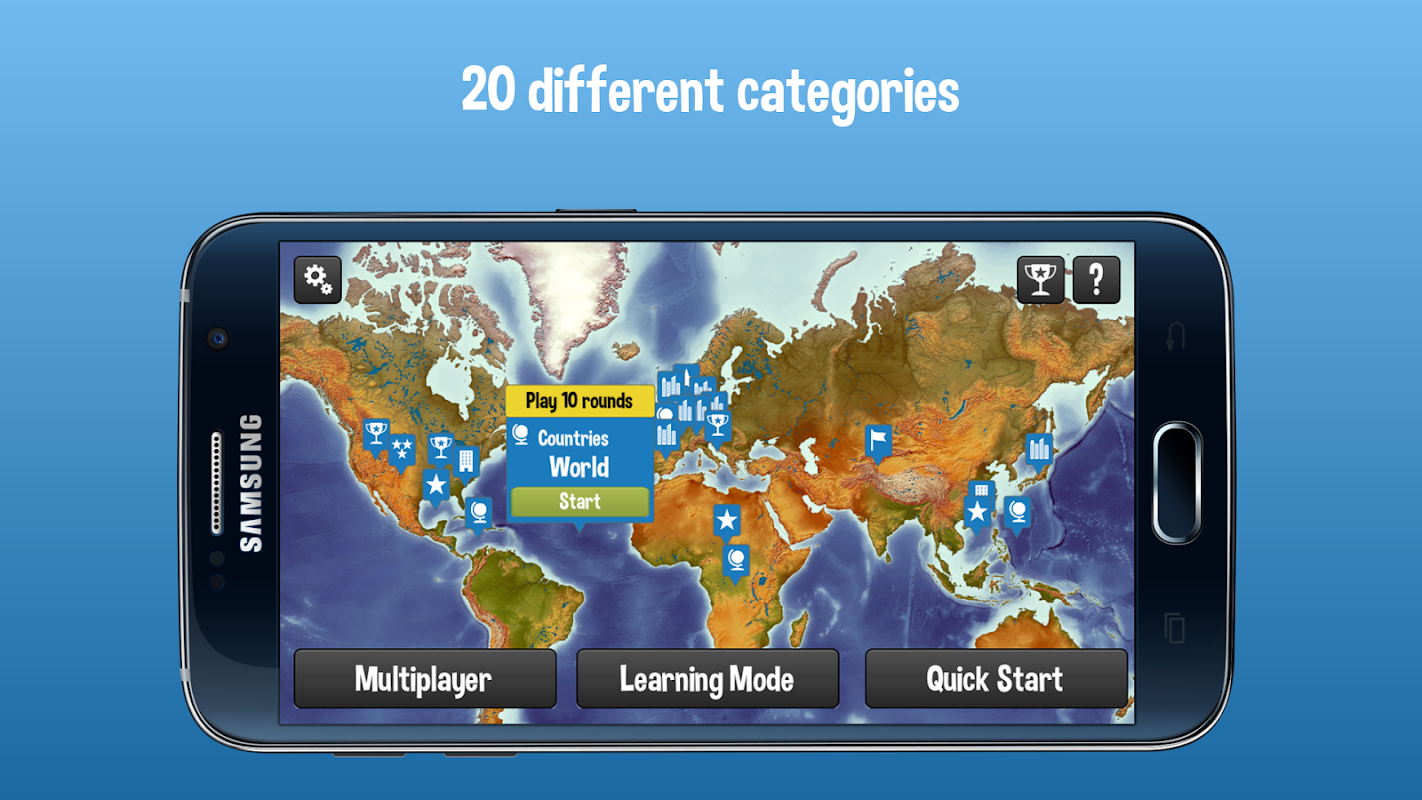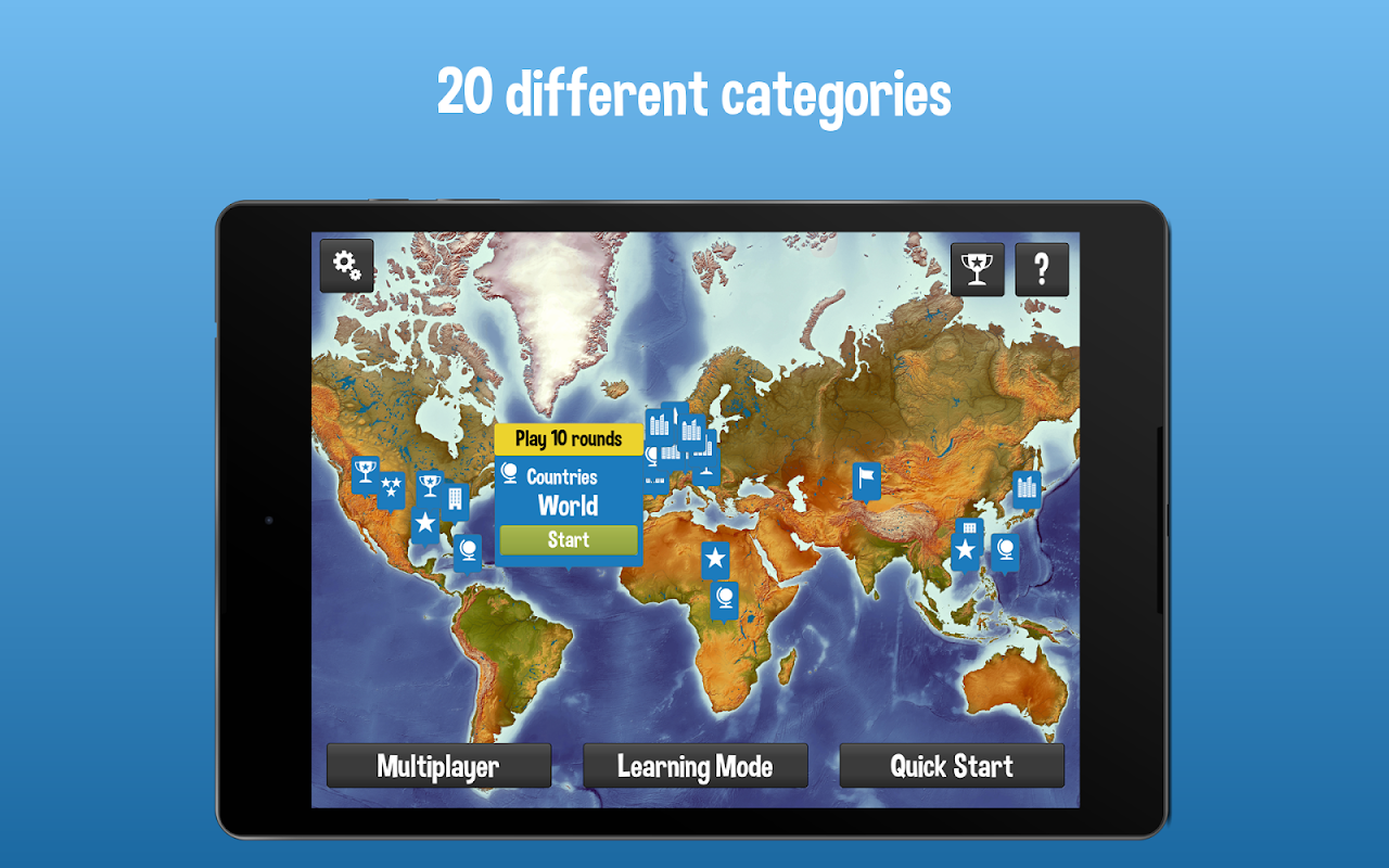 لعبة الجغرافيا مع أكثر من 7 ميو اللاعبين في جميع أنحاء العالم. أعلى لعبة التوافه 10 في 66 بلدا.