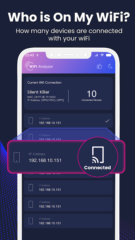 تحديد الأجهزة المتصلة بشبكة WiFi الخاصة بك. عرض عناوين IP الخاصة بالجهاز لتحسين إدارة الشبكة والتحكم فيها.