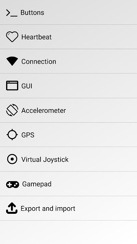 The app is designed for all handymen who need to control their creations built using Arduino, ESP, Rapsberry Pi and others. Would you prefer to communicate via Bluetooth? We have the "Bluetooth Device Control Pro" app for that.