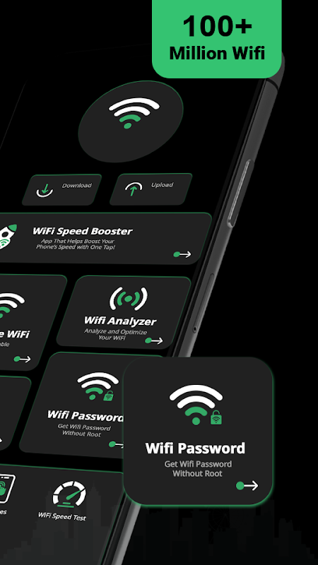 يقدم Wifi Analyzer وكلمات مرور wifi تحسين قوة إشارة wifi وجذرها من خلال فحص شبكات WiFi المحيطة ، وقياس قوة إشارة القنوات المزدحمة بمساعدة محلل wifi. يقوم مُحسِّن WiFi أيضًا بإجراء تحليل الشبكة. يوفر عرض مفتاح كلمة مرور Wifi المجاني أكثر من عشرين مليون نقطة اتصال تمت إضافتها إلى قاعدة البيانات الخاصة بنا ، ويحتوي تطبيق wifi password show على خيار رئيسي لمفتاح WIFI يمكن أن يساعدك على الاتصال بأمان متى وأينما تريد. يعمل ماسح Wifi و wifi البقع الرئيسية على تحويل شبكة wifi العامة إلى شبكة خاصة حتى تكون الإنترنت آمنة ومأمونة بمساعدة عرض كلمة مرور wifi المجاني وخريطة wifi.