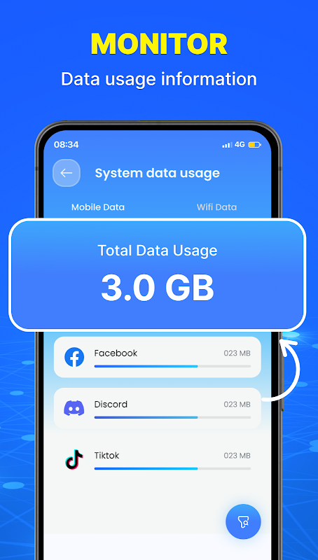 💡 استخدام البيانات التفصيلية: يساعدك محلل Wifi في الحصول على المعلومات الحالية حول إجمالي استخدام البيانات واستخدام البيانات لقائمة التطبيقات.
