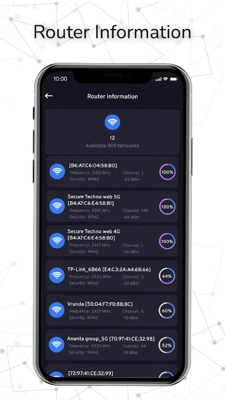 ماسح Wi-Fi مسح أي رمز QR ومسح الرمز الشريطي للحصول على عرض نتيجة دقيق. يعمل تطبيق Wi-Fi Scanner بشكل أساسي على تطوير مسح رمز الاستجابة السريعة لشبكة Wi-Fi والاتصال التلقائي بشبكة Wi-Fi ، ولا حاجة إلى كلمة مرور Wi-Fi ونوع SSID محدد. إنها طريقة اتصال سهلة ، ما عليك سوى المسح الضوئي والنقر فوق الزر للاتصال. عندما يذهب الأشخاص إلى مطعم الفندق أو السوق ، انظر إلى رمز الاستجابة السريعة لشبكة Wi-Fi الذي نحتاجه للاتصال بهذه الشبكة حتى يتمكن من مساعدة ماسح Wi-Fi الخاص بنا في الاتصال بسهولة بشبكة Wi-Fi.