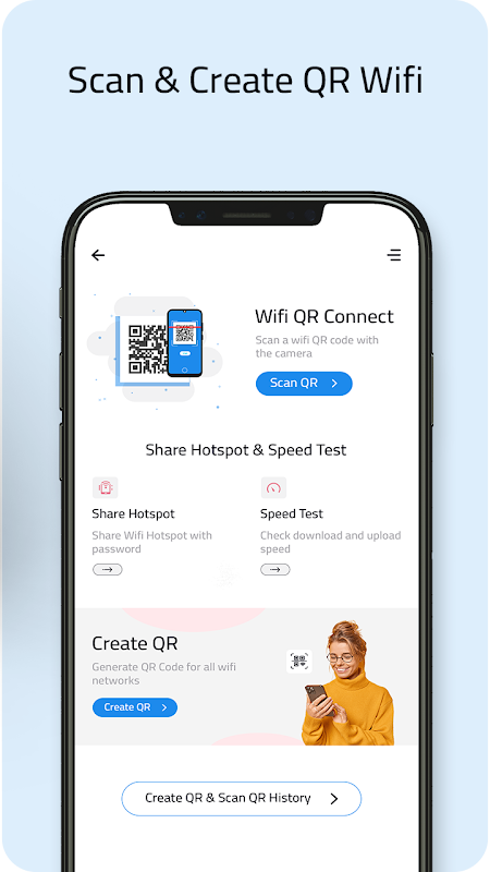 قم بإنشاء رمز QR لشبكة WiFi الخاصة بك أو قم بمسح QR لتوصيل أي شبكة WiFi باستخدام تطبيق QR Scanner.