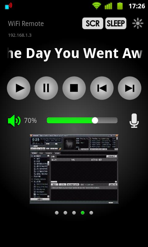 It is a wireless remote control for various media players in Windows. You need to install WiFi Remote Server in your PC. Under WiFi connection, you are able to control your music, movies, etc. You can switch on and off your monitor, shut down your PC, auto mute PC's volume for incoming calls.