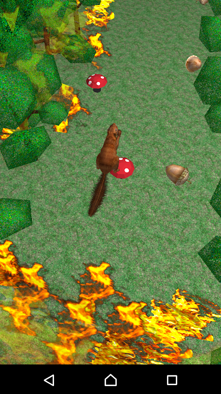 The fire in the forest. Animals must escape to survive. Help the squirrel to leave the burning forest. Collect nuts to accelerate and beware of fly agarics.