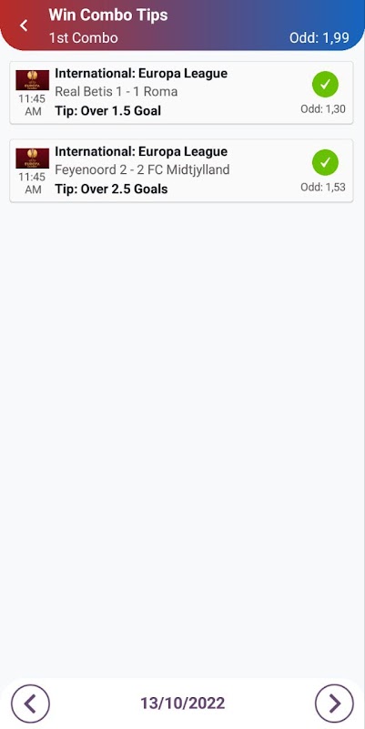 Win Combo Tips هو تطبيق تنبؤ لكرة القدم