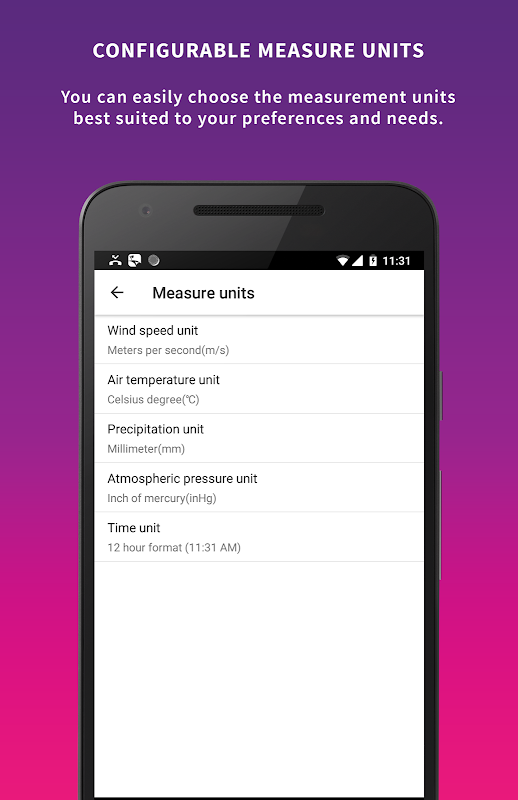 - Configurable favorite places, sports & measuring units