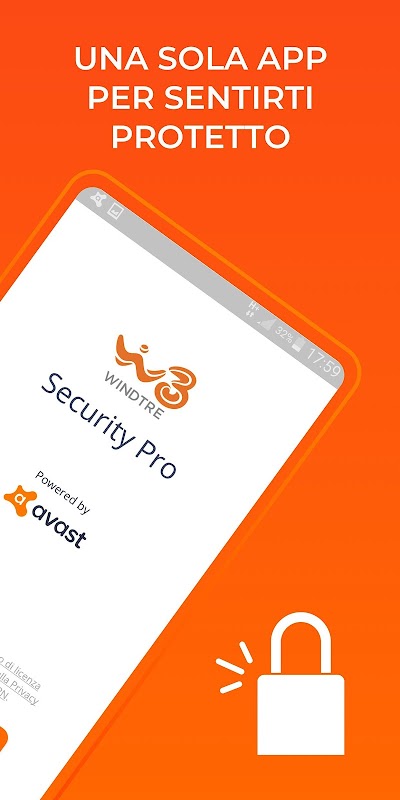 من خلال تثبيت تطبيق WINDTRE Security Pro المبتكر والمدعوم من Avast ، ستتم حمايتك أثناء التصفح عبر VPN ، وسوف تحمي بياناتك الشخصية ، وسوف تتجنب الرسوم غير المرغوب فيها ويمكنك التصفح بأمان حتى متصل بشبكة Wi-Fi العامة.