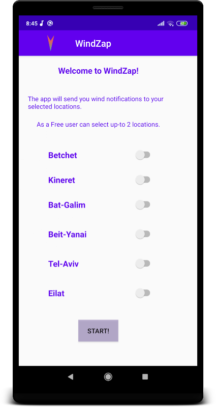 * مع تطبيق Wear OS، يمكنك الآن الحصول على إشعارات الرياح على معصمك، ولن تفوتك أي جلسة. مواقع إسرائيل مجانية، أما المواقع الأخرى فتتطلب اشتراكًا مدفوعًا للعمل.