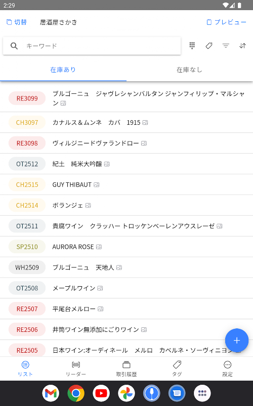 لدينا أكثر من 100 نوع من النبيذ في المخازن ، وفي كل مرة نقوم فيها بزيادة أو نقصان النبيذ ، نبحث عن النبيذ المقابل باستخدام برنامج جداول البيانات. دعونا ننتهي من هذا العمل غير الفعال. إذا كنت تستخدم winecode ، فيمكنك عرض النبيذ المقابل فقط عن طريق قراءة الباركود من هاتفك الذكي. يمكنك التحقق من قائمة جميع التغييرات كمحفوظات.