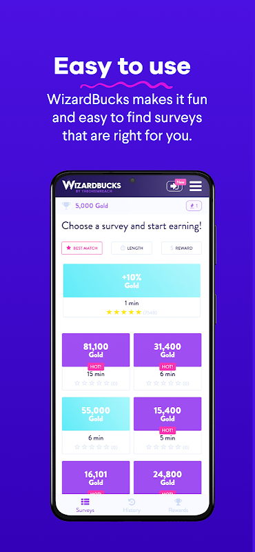 نقدم لكم WizardBucks، الطريقة الأسهل لمشاركة رأيك والحصول على المكافأة! سواء كنت في فترة راحة أو كان لديك بضع دقائق فقط، يمكنك الحصول على مكافآت بسرعة بمجرد مشاركة ما تفكر فيه.