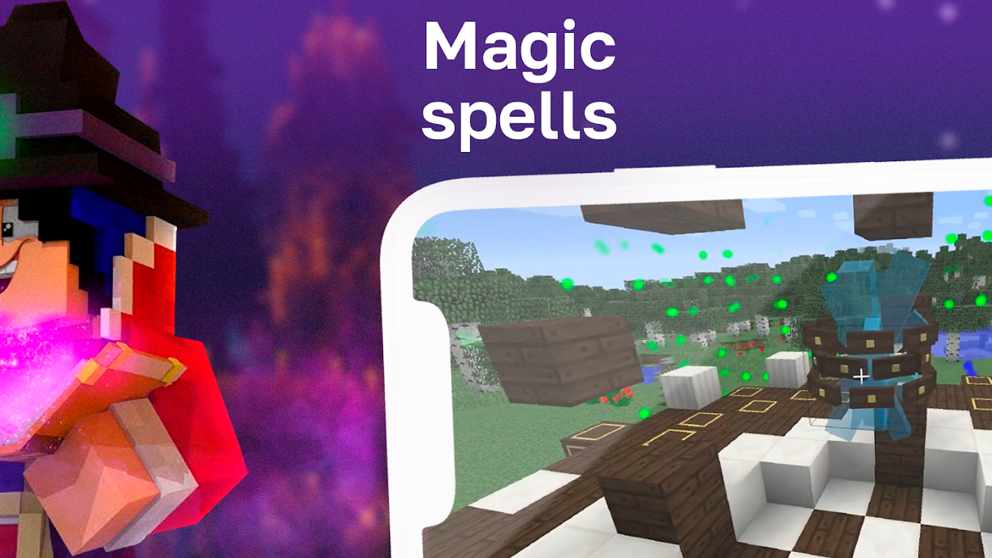We have developed this application for you so that you can download the Wizardry mod for Minecraft Pocket Edition, in which you will take on the role of a real advanced Wizard, where you will be able to use abilities. The design of the mcpe Bedrock interface is made very convenient and pleasing to your eyes, even a beginner can download it. We wish you a pleasant and game, with the Magic Minecraft mod or Magical mod.