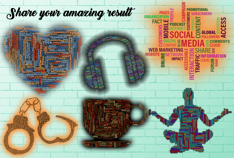 Just enter a few words, and the application will shuffle them around in a cute disorderly fashion. Pick a color or two for your meaningful words, shape them, export them, use the pic. Rinse and repeat.
