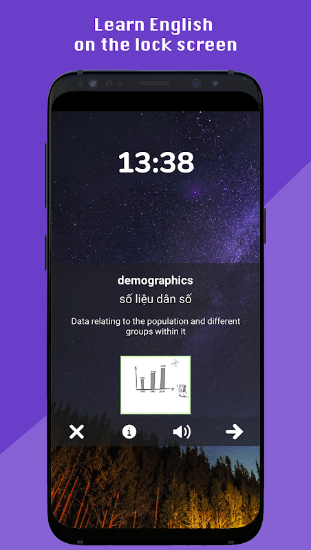Learn English on Lockscreen help you learn English every time when you unlock the lock screen. It replaces your boring lock screen with a beautiful lock screen and also helps you learn English without losing time.