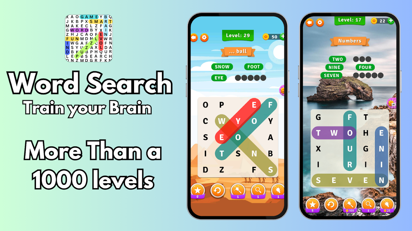 لعبة لغز البحث عن الكلمات! - ربط الحروف في أي اتجاه لتكوين الكلمات المخفية! مع أكثر من 1000 مستوى، قم بتدريب عقلك، واستمتع بألغاز الكلمات المريحة والجميلة.