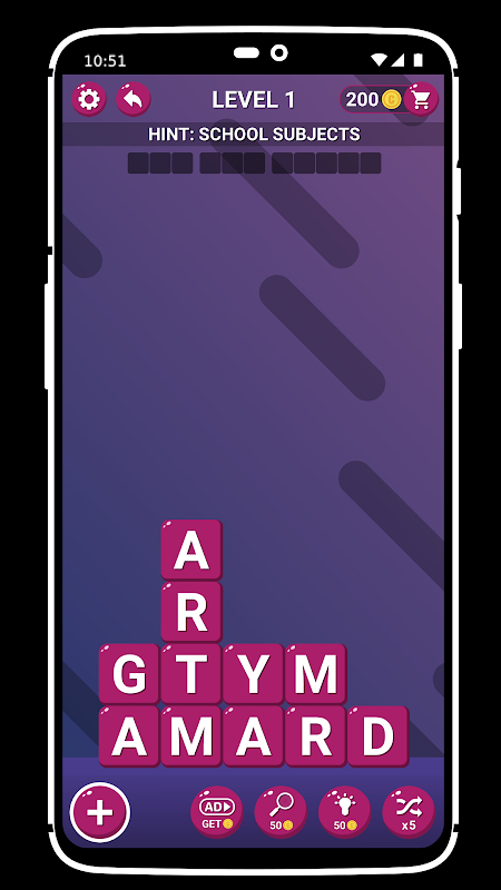 Swipe to reveal hidden words and to bring the Word Touch : Puzzle King crashing down! Easy at first, but gets challenging fast. Can you beat the game?