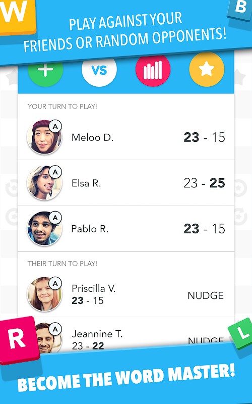 لعبة ألغاز الكلمات ضد الأصدقاء