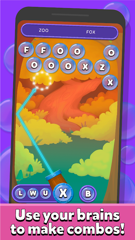 Relax and have fun spelling words and shooting bubbles. Travel across various stages and solve the word puzzles in each level. Take your time and think about your next move! Shoot with precision to earn the most points. Take a look at the next letter that the raccoon is holding. Use your brains and your aim to form the right word and advance to the next level. Got some time to relax? Aim for the right spot and pop the bubbles!