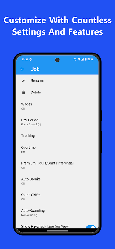 • يتضمن مجموعة متنوعة من الميزات لتناسب احتياجاتك: العمل الإضافي ، ساعات العمل المميزة / التفاضلية ، النصائح ، المبيعات ، المصروفات ، الزيادات ، مدفوعات العطلات ، المكافآت ، الخصومات ، كل يوم ، تتبع التحولات المدفوعة ، والمسافات المقطوعة
