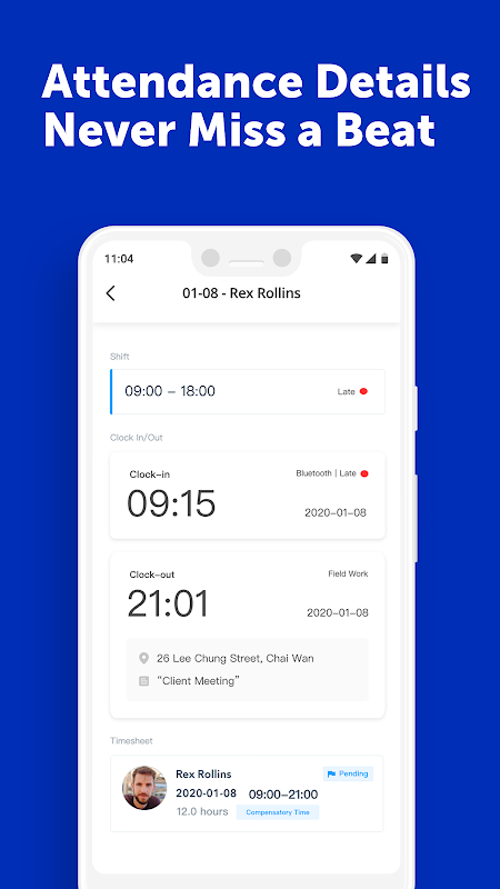 No need to check each staff’s attendance one by one. From the homepage, it is clear for you to know how many staff already clock in/out and who is still pending.