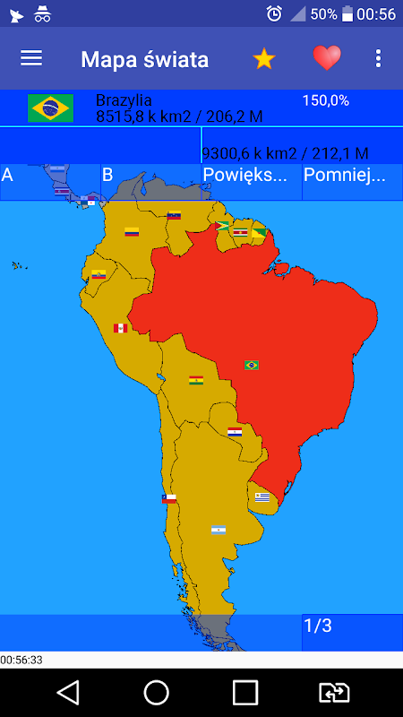 أقدم لكم تطبيقًا يتضمن خريطة تفاعلية للعالم. كل بلد لديه البيانات: مساحة السطح والسكان.