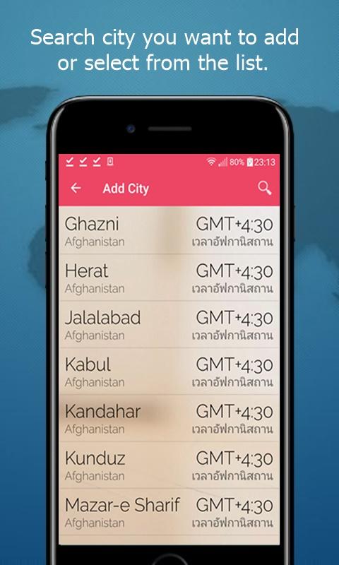 مع تطبيقات الوقت العالمي أنت يمكن معرفة الوقت في المدن في جميع أنحاء العالم، وأيضا تحويل المنطقة الزمنية من مدينة إلى أخرى.