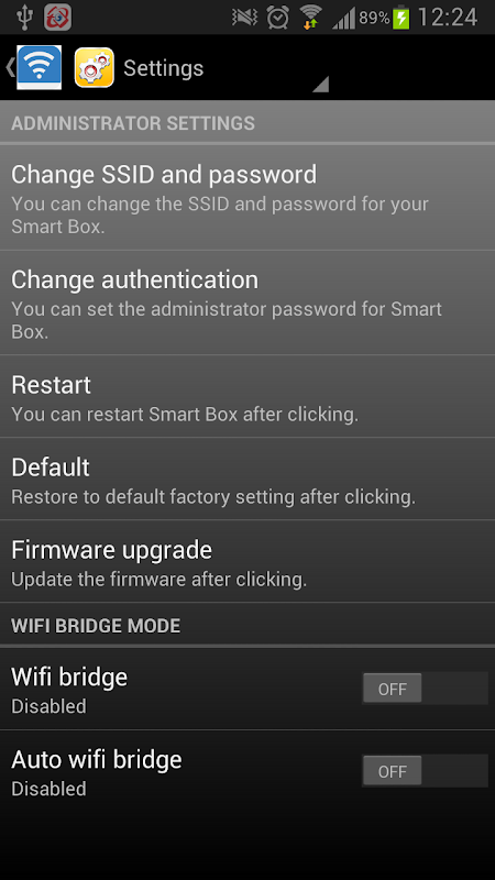 * WiFi Bridge/Router settings