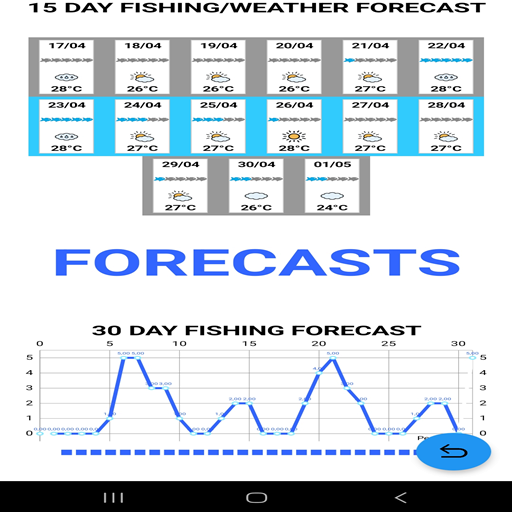 نوفر لك توقعات الطقس لمدة 30 يومًا وتوقعات الطقس لمدة 15 يومًا، لإعلامك بأفضل الأيام والساعات لصيد الأسماك.