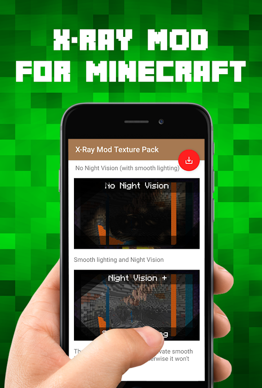 تساعدك حزمة X-Ray Mod Texture Pack لتطبيق Minecraft PE على تنزيل حزمة X-RAY Texture Pack وتثبيتها في لعبة Minecraft Pocket Edition. انسَ كل مستكشف الملفات أو BlockLauncher ، وقم بإنجاز المهام بشكل أسرع وأسهل من خلال المثبت بنقرة واحدة.