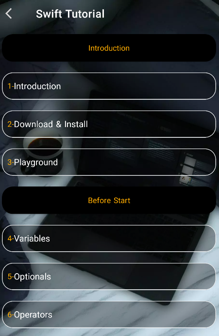تطبيق جديد ومجّاني هذه الصورة إلى تعليم لغة البرمجة "سويفت" بسهولة تامة ، وذلك عبر الوصلة والمختصرة التي تصل إلى أذهان الطالب بسهولة ولما تتضمّن من أمثلة عديدة وصور وأكواد عديدة مع نتيجته كل كود.
