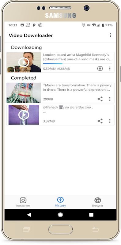- إخطارك عند اكتمال عملية تنزيل الفيديو. سيتم حفظ الفيديو في مجلد التنزيل.
