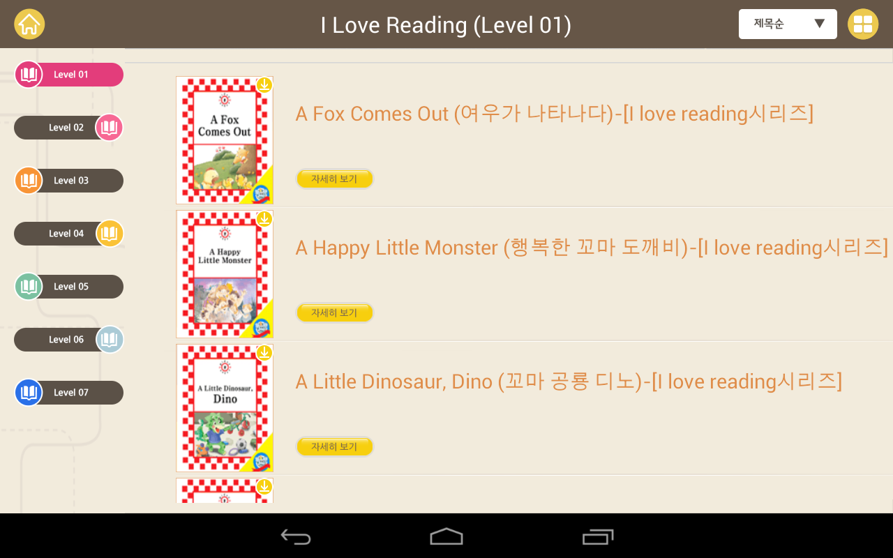 세계명작, 캐릭터동화, 영어노래 등 다양한 컨텐츠로 제작되어 영어 습득 정도에 따라 알맞은 도서를 선택하여 읽을 수 있습니다.