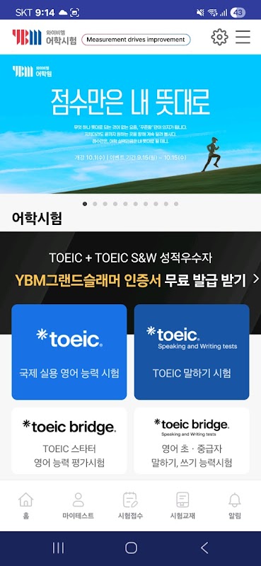 التطبيق الذي يمكن استخدامه بسهولة من معلومات جدول الاختبار ، وتسجيل الاختبار إلى التحقق من الدرجة لجميع اختبارات اللغة التي تديرها YBM