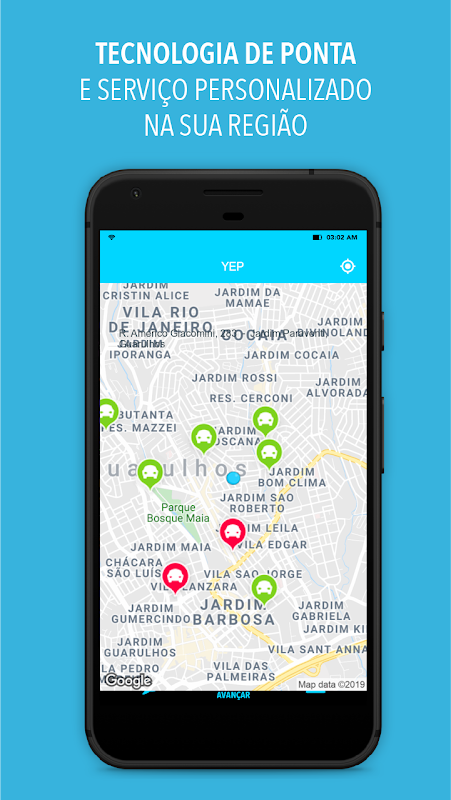 Nosso aplicativo permite que você chame um de nossos veículos e acompanhe o deslocamento do carro no mapa, sendo avisado quando ele estiver na sua porta.