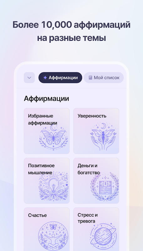 ● Создайте свои утверждения: позволяет вам создавать персонализированные позитивные высказывания.
