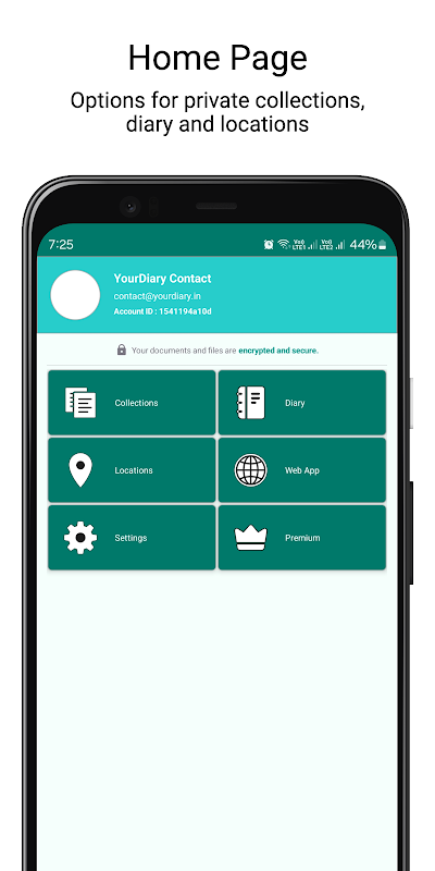 تعتبر يومياتك الحل الأمثل لتخزين ملفاتك الخاصة والصور الشخصية وكلمات المرور وإدخالات اليوميات بشكل آمن. يتم تشفير كل ما تقوم بتحميله أو كتابته، مما يضمن أنك وحدك من يمكنه الوصول إلى بياناتك، ولا حتى المطورين.