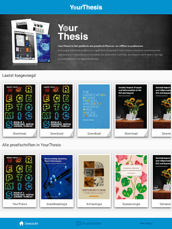 نشر الرسالة الخاصة بك مع التطبيق، وتوزيع وتبادل ما لديهم الطبية الدكتوراه أطروحة بسيطة. التطبيق عبارة عن مكتبة رقمية الطبية فيها أطروحات يمكن ترتيب حسب التخصص.